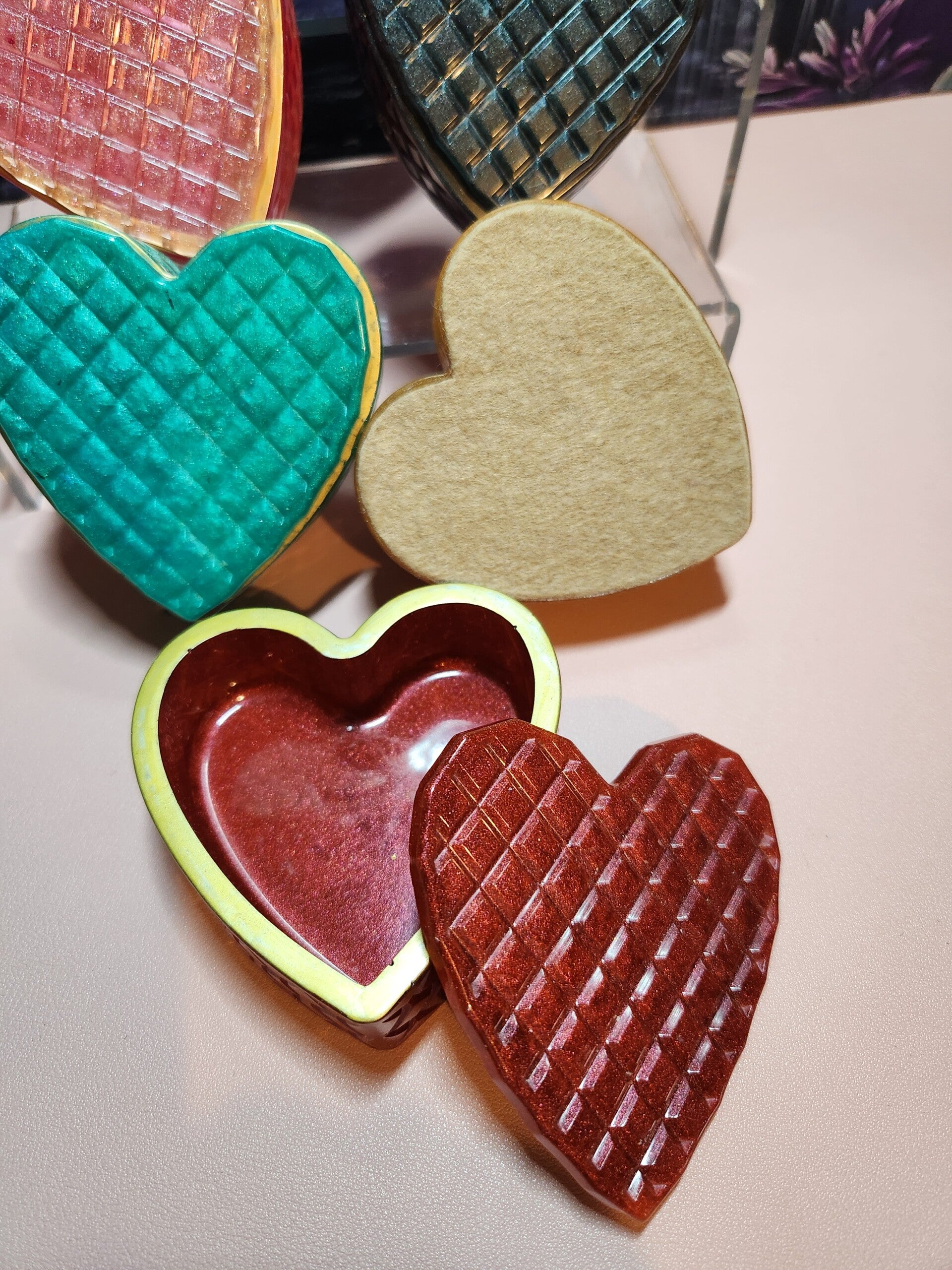 Small resin Heart shaped Jewellery box with a Lid. Shimmery accessory for your dressing table or vanity area.
